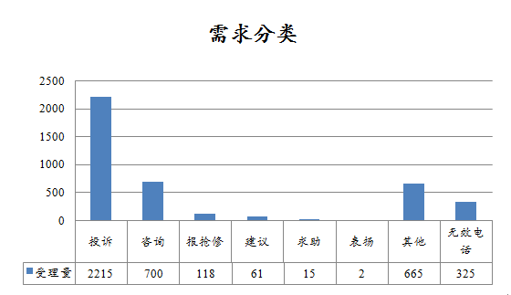 市民来电分类(含省、泰州工单):违法建设483件、农业农村农民401件、交通运输318件、环境保护258件、水电气供应118件、市政管理107件、占道经营93件、邮政通讯广播电视88件、房产物业87件、社会治安87件、劳动社保71件、工商管理58件、市容环卫56件、征地拆迁安置33件、教育管理31件、医疗卫生24件、城市规划建设23件、安全生产16件、物价管理12件、园林绿化10件、金融税务7件、人口计生4件、社会救助救济3件、文化体育2件、其他1386件。